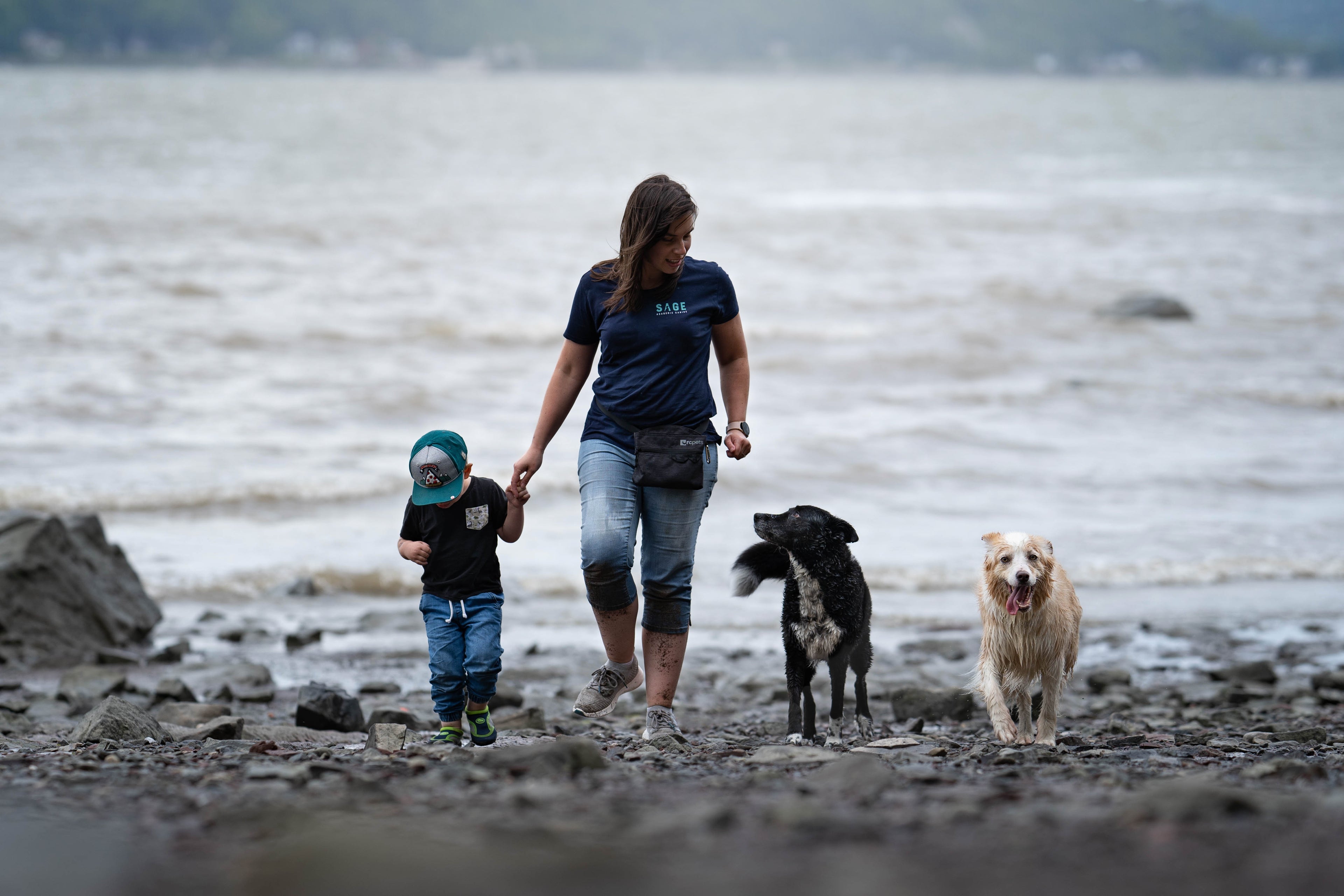 J'ai commencé à suivre des formations en comportement canin grâce à mes chiens imparfaits, Dzy & Sage. C'est la belle border collie blond blanc que vous voyez qui a donc inspiré le nom de l'entreprise... et ce n'était pas parce qu'elle portait bien son nom ! Nous la surnommions affectueusement "Sage, la pas sage". Avec le temps, les apprentissages, beaucoup de plaisir et de sports canins, nous avons pris en sagesse.